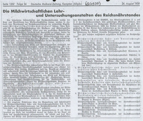 Das „Milchwirtschaftliche Taschenbuch“, das von 1878 bis 1938 im Verlag Paul Parey in Berlin erschien und erst ab dem 8. Jahrgang 1884 in Bibliotheken verfügbar ist, und später auch ein „Reichsadressbuch der Molkereien“ enthielt, wurde bisher zu dieser Thematik noch nicht ausgewertet, Es ist anzunehmen, dass es bei Käse vor allem der beliebte „ Tilsiter“ war, der der einzige eigenständige, in Deutschland entwickelte Käse ist.